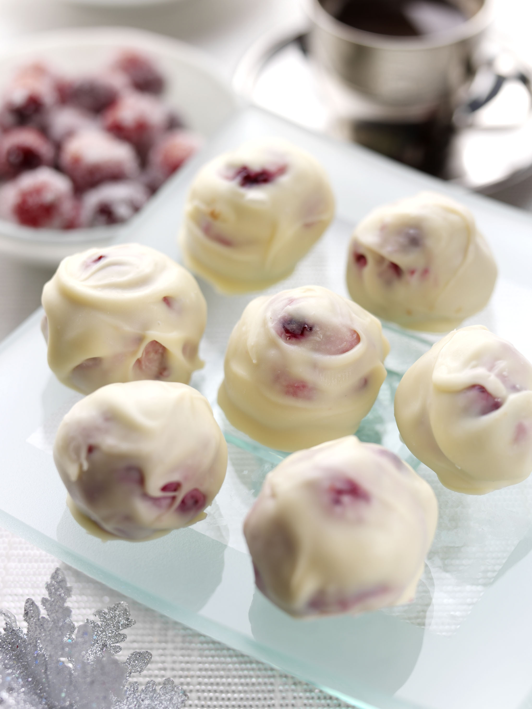 Smooth and delectable, the combination of sharp cranberries, creamy white chocolate and zesty orange make these a wonderful taste sensation as well as a perfect Christmas gift or after dinner treat.