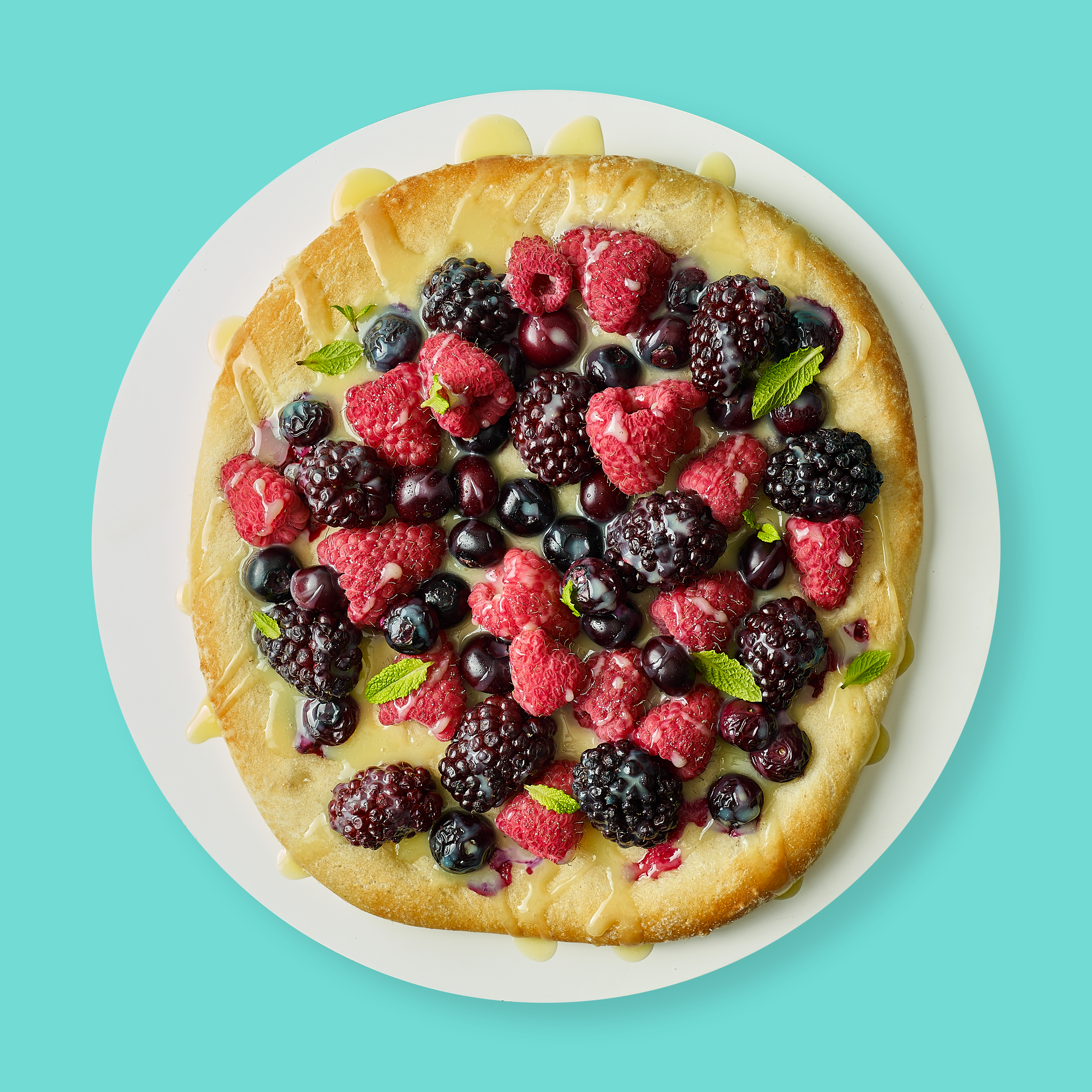 If you’re looking for a tasty treat, try out this simple sweet pizza with a topping of extra goodness Measure the flour, yeast and salt into a large bowl. Mix 300ml hand-hot water with the oil and honey or sugar in a jug, then pour into the dry mix, stirring all the time to make a soft dough. Turn the dough out onto a lightly floured surface, then knead for 8 minutes until the dough no longer feels sticky, sprinkling with a little more flour as you need it. Place the dough in a lightly oiled bowl and cover with cling film, then leave in a warm place to rise for 1 hour. Preheat the oven to 200C/180C fan /gas 6. Remove the cling film and tip the dough out onto a lightly floured surface. Knead gently then cut into 4 pieces. Roll out each dough to a round and place on a baking tray lined with non - stick baking parchment. Scatter the berries over each pizza dough and place in the oven to cook for 7 – 10 minutes until the dough is golden and risen and the berries have burst and have released their juices. Whilst the pizzas are in the oven place the cream and chocolate in a small saucepan and gently heat until the chocolate has melted and the sauce is smooth and creamy. Remove the pizzas from the oven and drizzle over the white chocolate sauce and top with a few mint leaves. Serve immediately. |